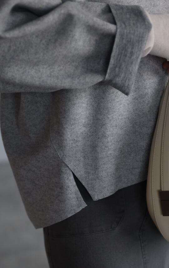 1枚で着るのはもちろん、シアータートルプルオーバーやハイゲージのニットをインに着たレイヤードスタイルもオススメです。
